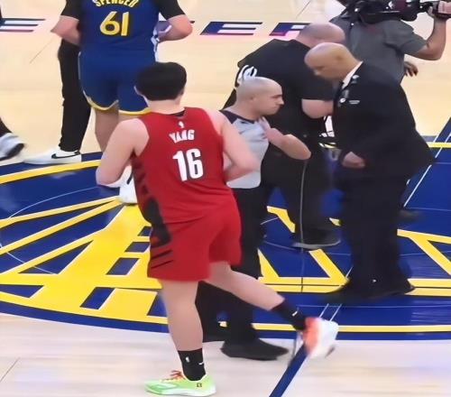 NBA裁判服了!主动给杨瀚森大拇指,244斤小杨撞头抢球感动太多人