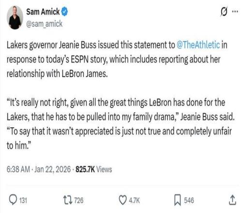 面对ESPN这一篇引爆社媒的爆料,正主珍妮巴斯火速下场辟谣,她说道:“考虑到詹姆斯为湖人所做的一切,他不应被卷入我的家族纠纷,那些说我不感激他的付出完全是无稽之谈,对他来说也极其不公平。”